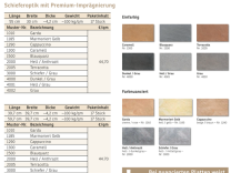 | Oberfläche: | diamantgebürstete Schieferoptik ; Premium Imprägnierung , R10 Rutschfestigkeit |