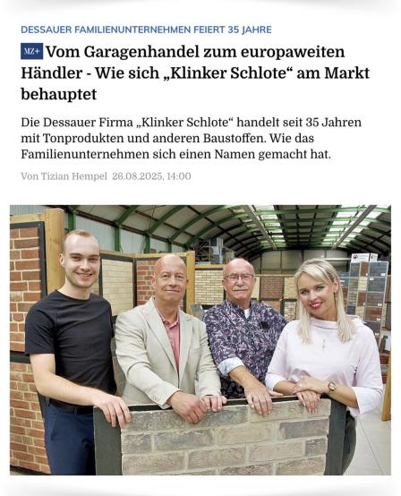 Seit 35 Jahren steht Klinker Schlote in Dessau für Qualität und Verlässlichkeit im Baustoffhandel. Gegründet 1990 von Siegmund Schlote, entwickelte sich aus einer kleinen Garage ein Familienunternehmen, das heute weit über die Region hinaus bekannt ist.